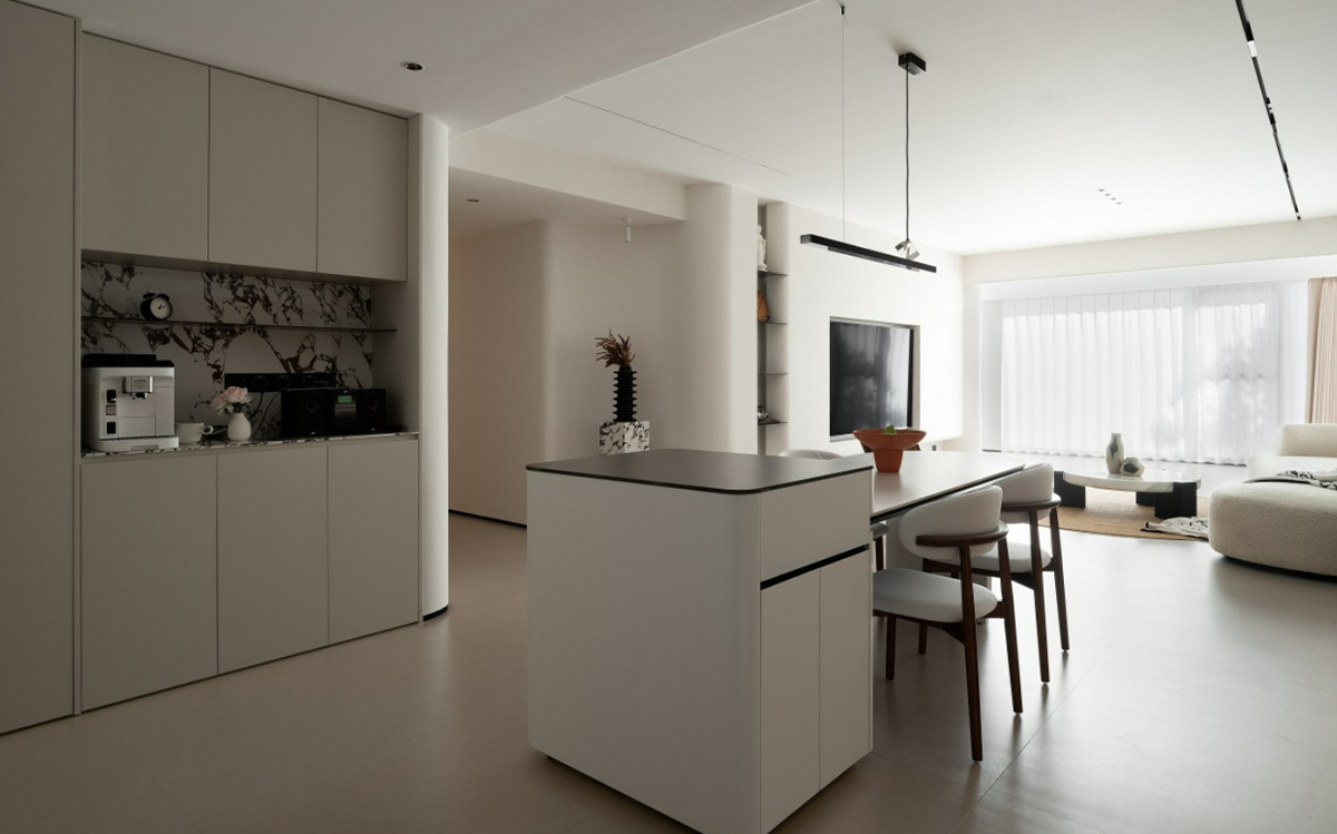 全开放的客餐厅布局,极大地延伸了视线,给人一种开阔的视野感。软装搭配浅色系沙发,使整个空间的氛围恰到好处,再以奶油色调为主基调,营造轻松且舒适的家。